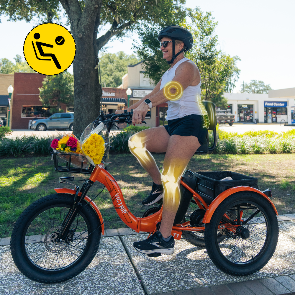 To make the joy and convenience of cycling accessible to even more people, VicTrip proudly introduces the all-new T1 Electric Tricycle! This uniquely designed three-wheeler not only inherits the eco-friendliness and ease of electric bikes, but also sets itself apart with its exceptional stability and versatility, custom-built for riders of all ages, especially those who seek extra balance or prioritize practicality.
